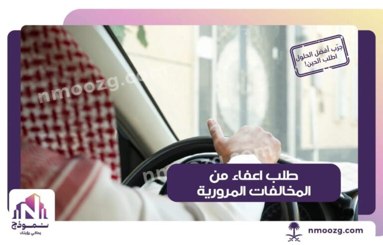 إذا كنت بحاجة إلى التقدم بطلب إعفاء من المخالفات المرورية، فإن موقع نموذج يقدم لك خدمة صياغة المعروضات بشكل احترافي ودقيق وللتواصل معنا على الرقم: (+966) 59 265 8597.